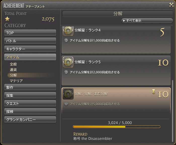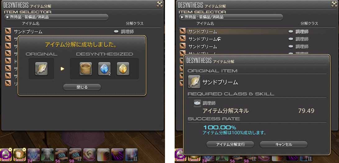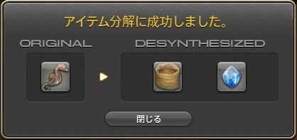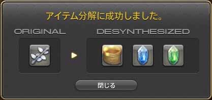 アイテム分解後の画面は、
