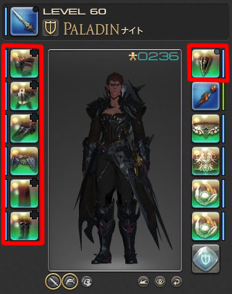タンク装備の左側と盾、詩人装備の左側を