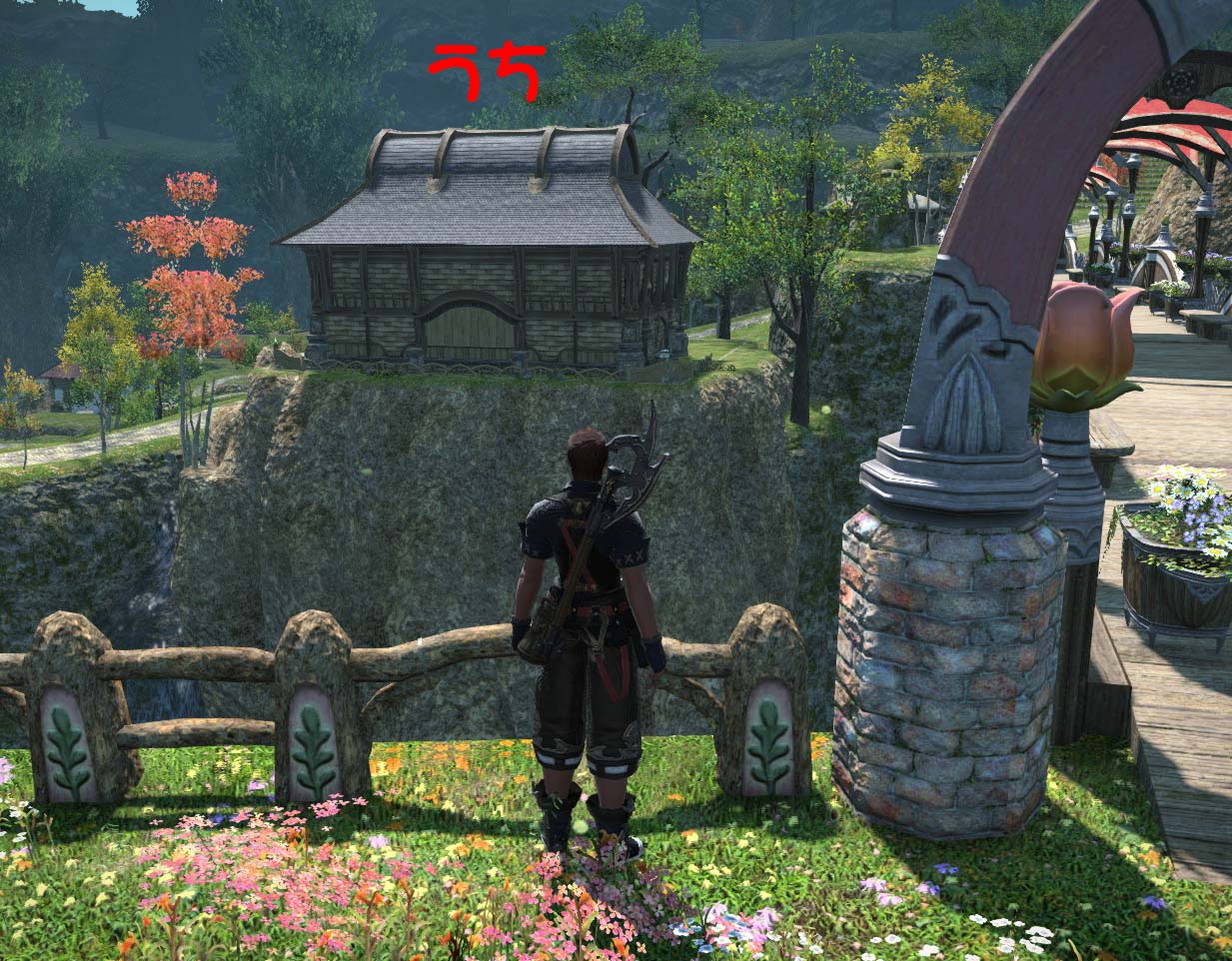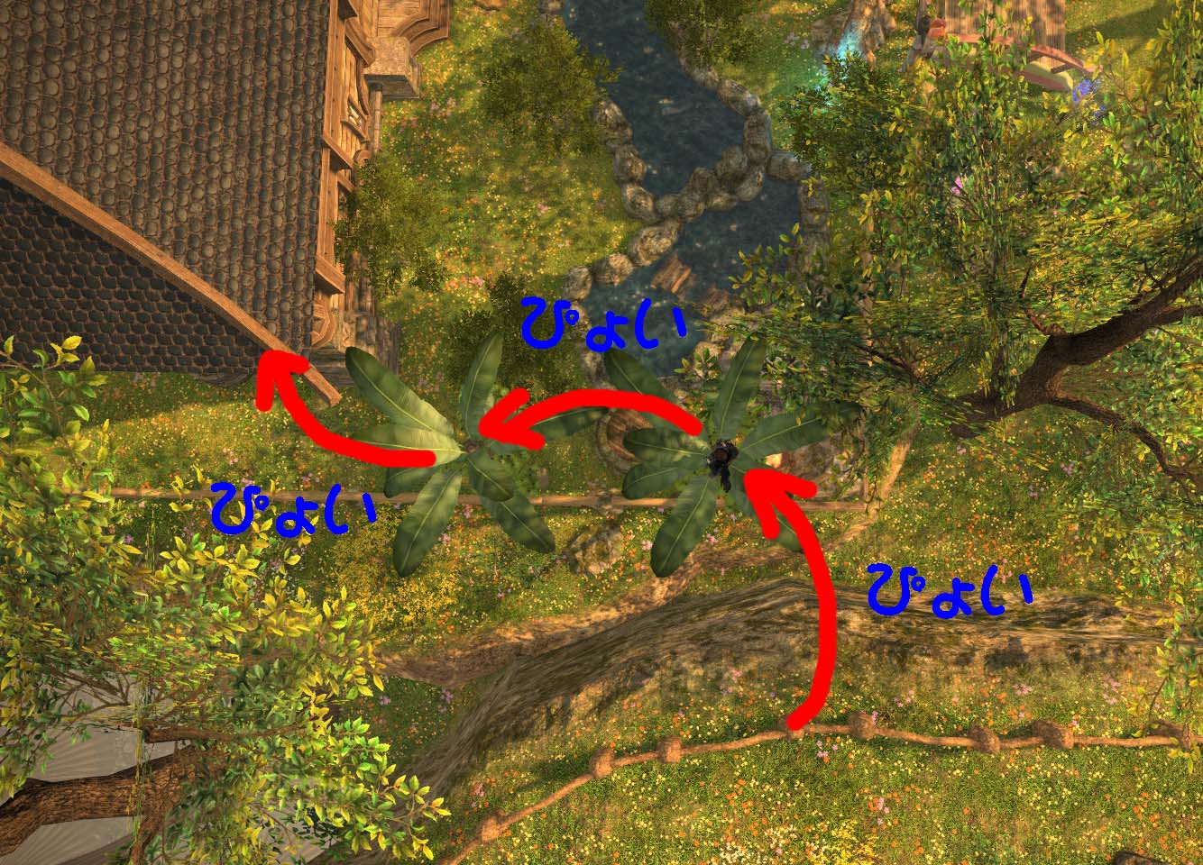 上の崖の柵から、ただ飛び乗っていく感じです (o^ー゚)